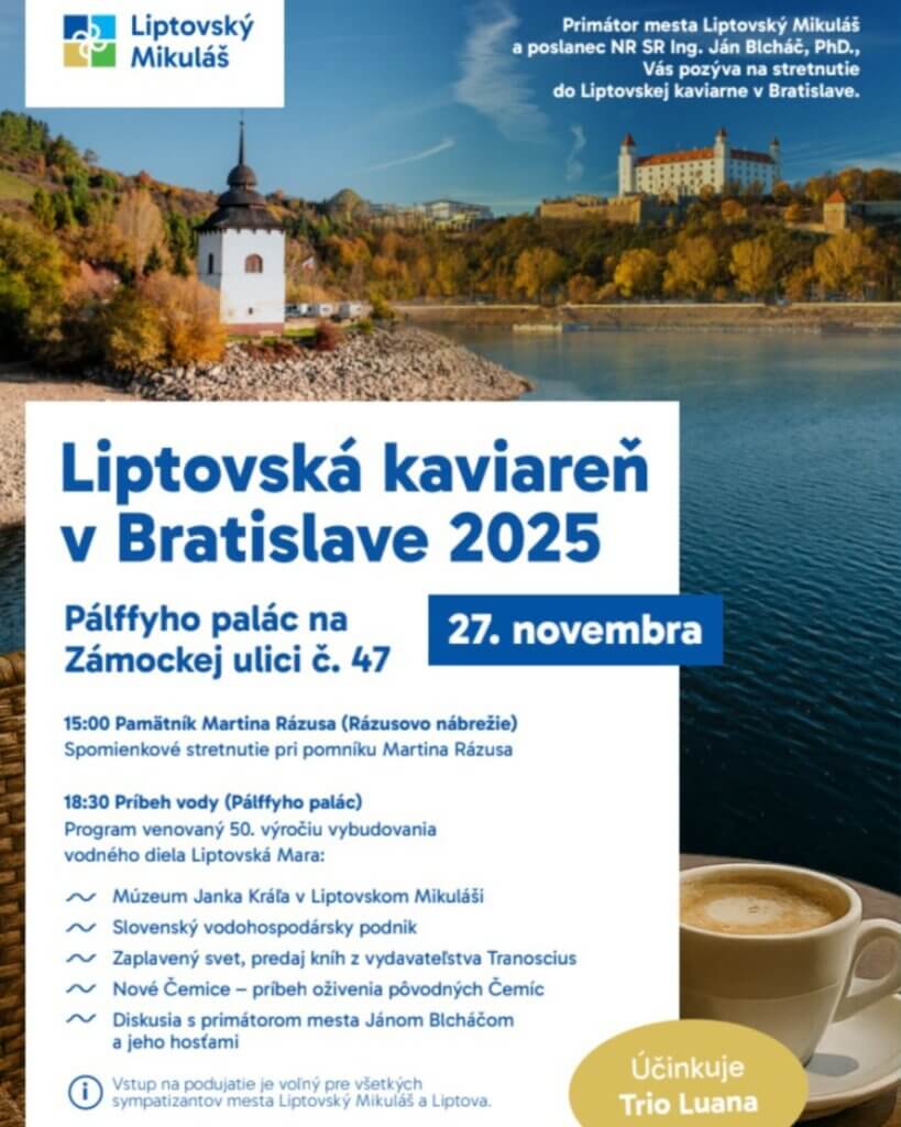 Pod záštitou primátora mesta Liptovský Mikuláš sa 27. novembra 2025 v Pálffyho paláci v Bratislave uskutočnilo obľúbené podujatie Liptovská kaviareň v Bratislave 2025.